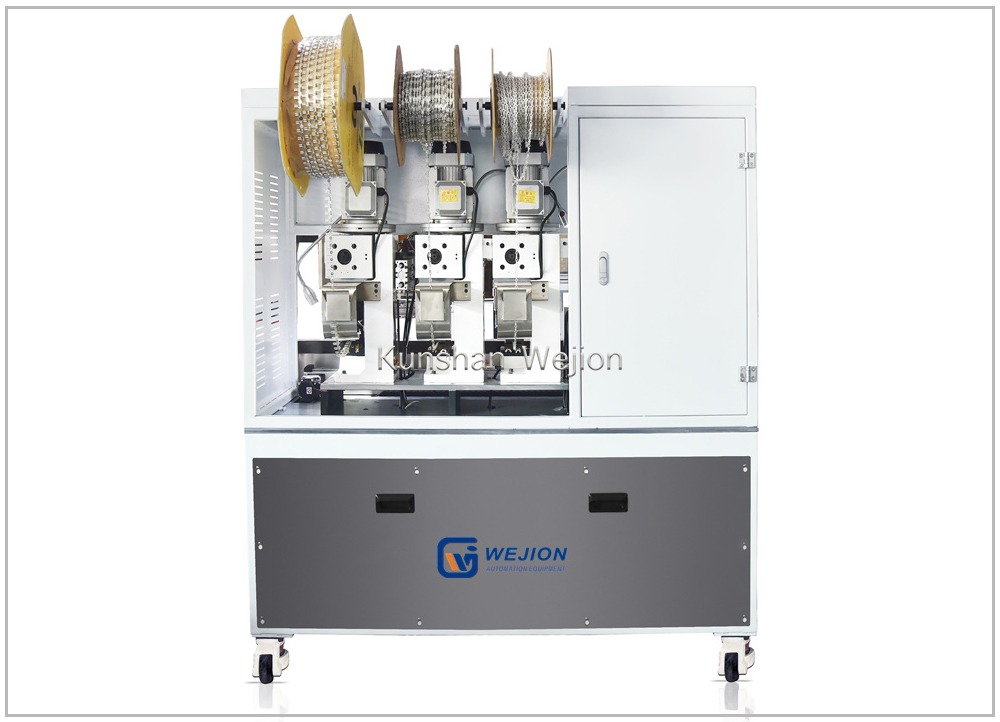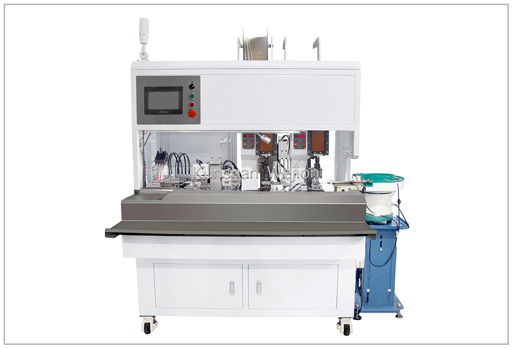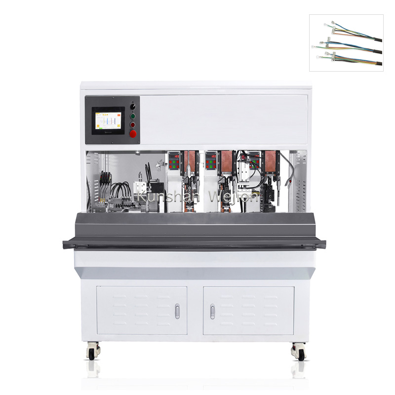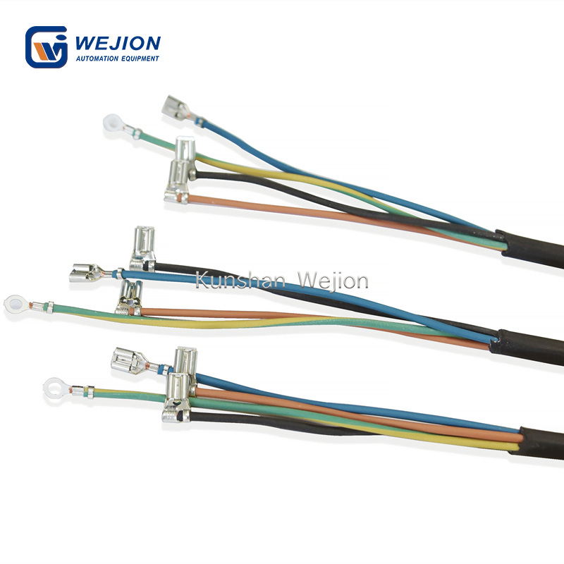 这是一种半自动剥线和压接机。可加工3芯、4芯电源线带及端子压接。本机可处理长度不一的线材。长度差为0-200mm。它还可以将不同的端子同时压接到不同的芯线上。